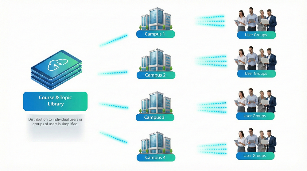 This enterprise-grade multi-tenancy ensures that each campus remains a distinct ecosystem with unique branding, tailored course libraries, and specific security configurations. Users benefit from a flexible structure where they can belong to one or multiple campuses simultaneously, receiving content and certifications dynamically linked to their unique profile attributes. This approach not only streamlines content management but also provides granular, audit-ready reporting hierarchies designed to scale with your organization's growth.